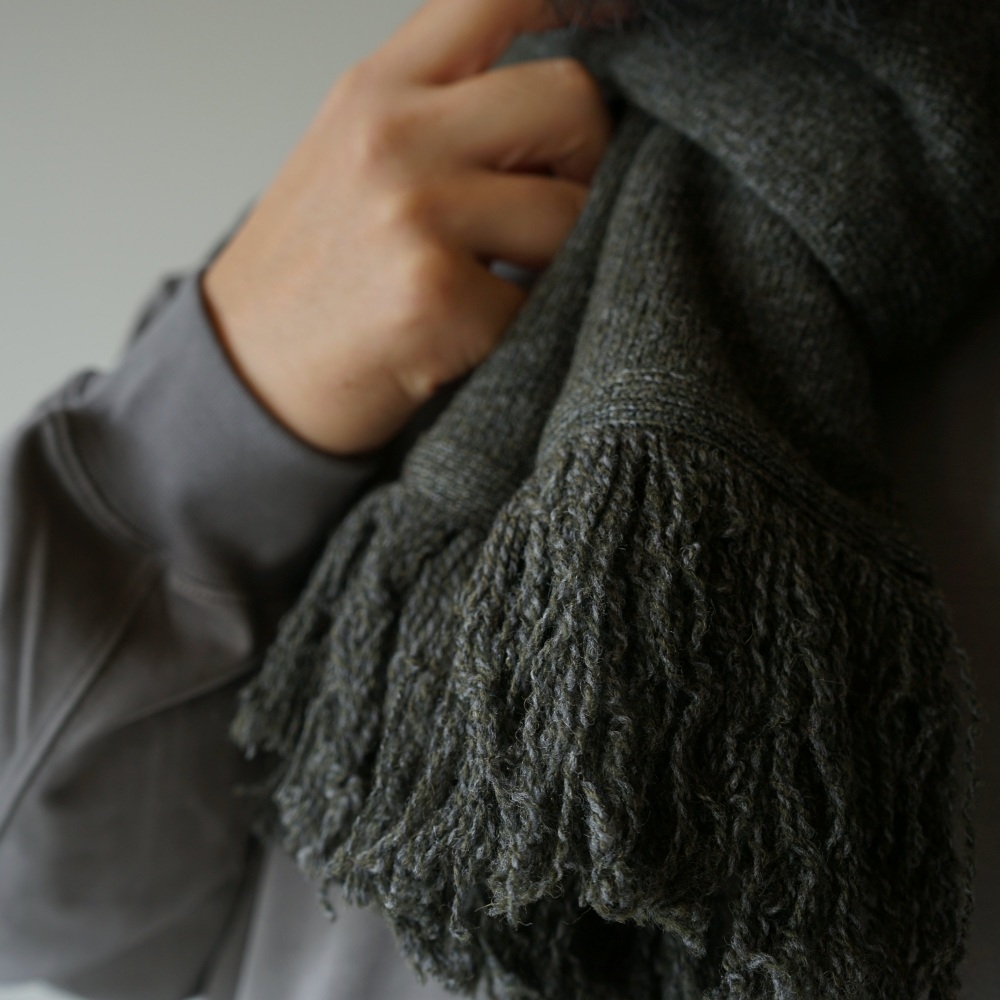 【unisex】STILL BY HAND - 7G Fringe muffler / Melange Khaki