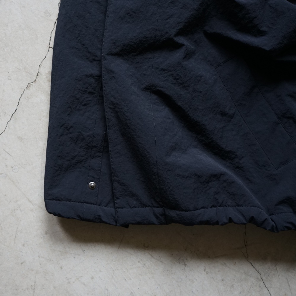 表地に撥水性のあるナイロン素材を使用した裏ボアのクルーネックベスト。